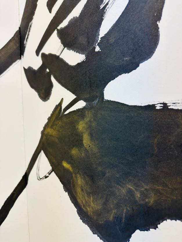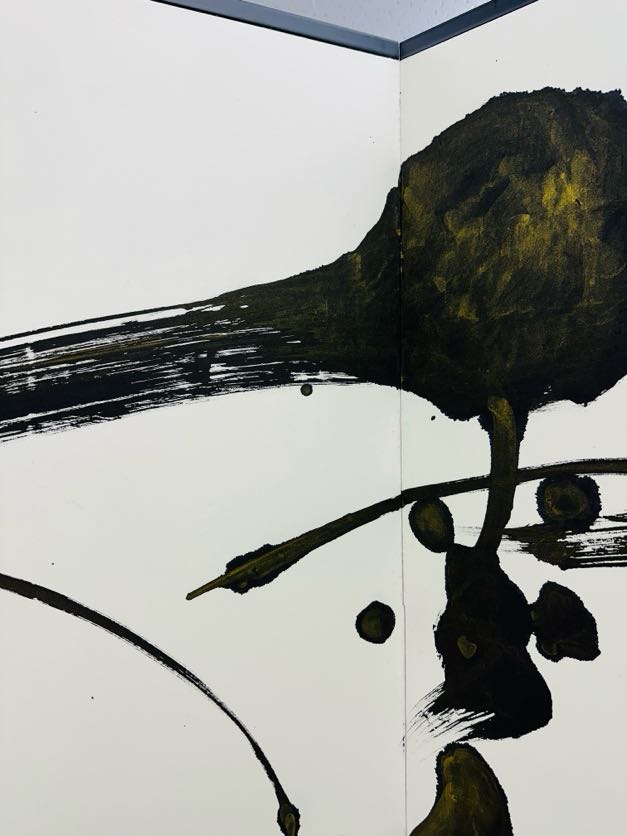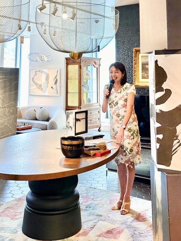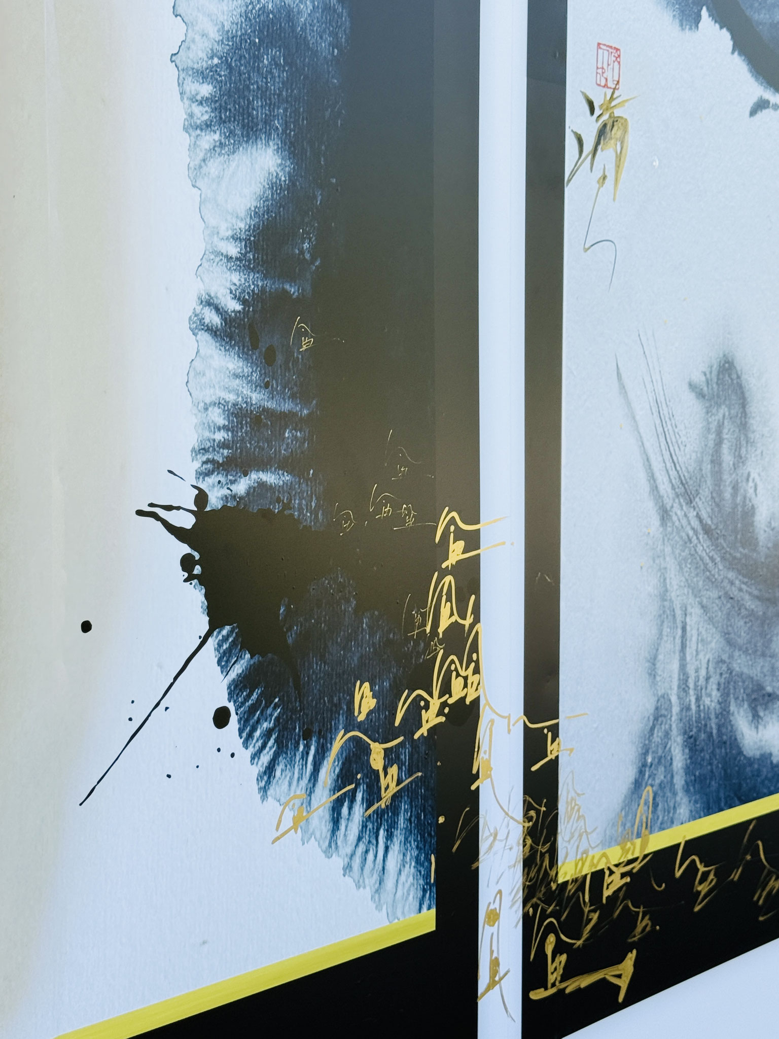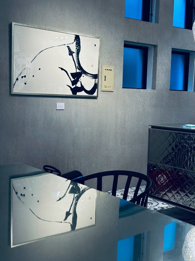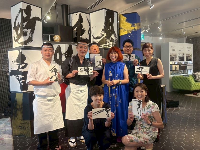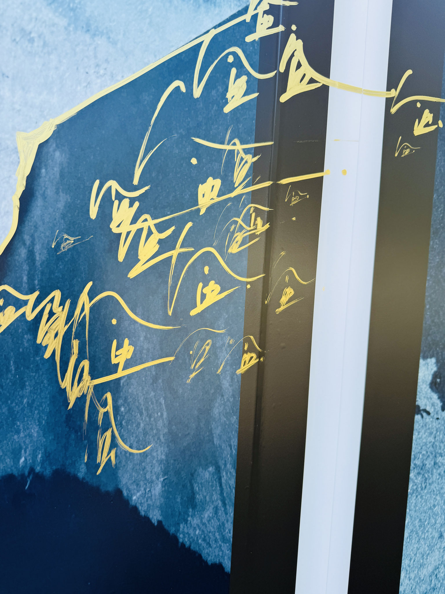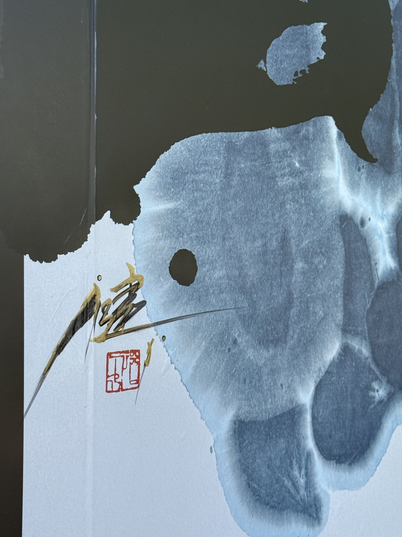 2024年に好評いただいたトーヨーキッチンスタイル名古屋での個展に引き続き、この度、トーヨーキッチンスタイル福岡ショールームにて個展をさせていただくこととなりました。2024年の秋に開催されたフランスパリでの個展の連作と、一字書・墨象のモダンな融合作品。濃紺が美しい希少な墨と、雲母などのミネラルな素材を融合し、新しい表現に挑み続ける創作の数々。モダンインテリアと、前衛書道のコントラスト、みなさまお楽しみいただけることと思います。初日はオープニング企画(7/5土曜)も開催しますので、ぜひ足をお運びくださいませ。