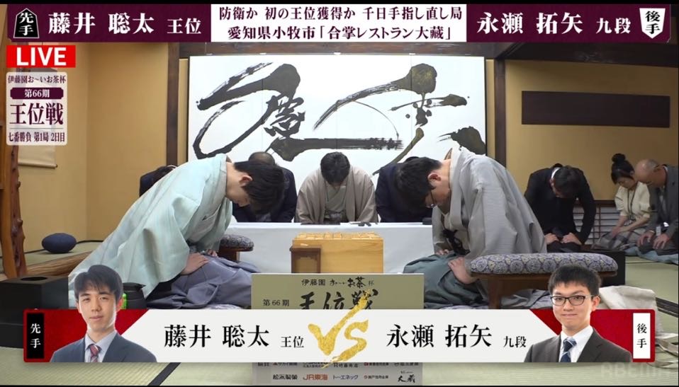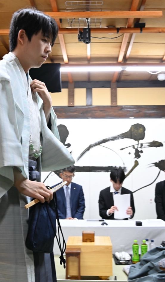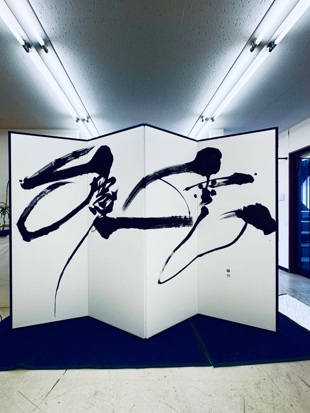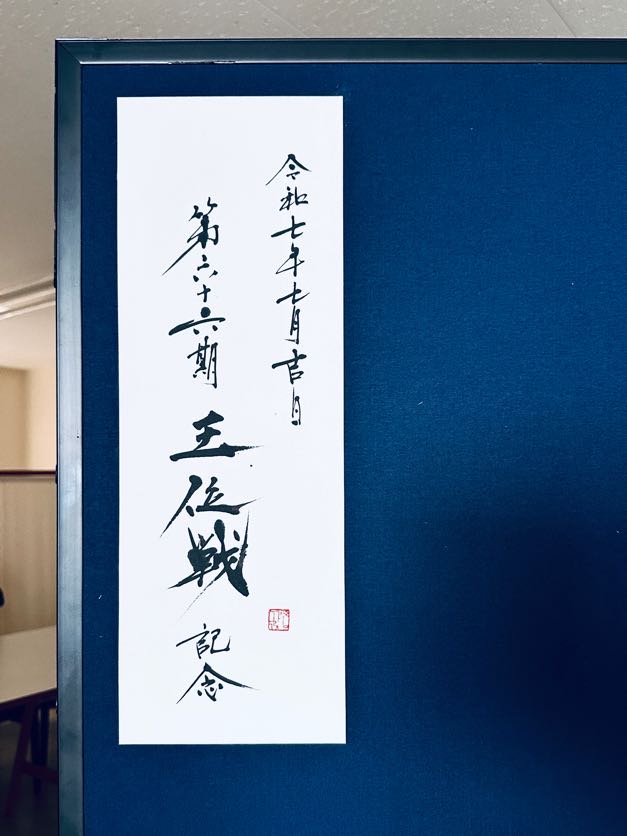人気の藤井聡太氏が対戦する大一番、第66回王位戦第一局の屏風をてがけさせていただきました。その文字は「慶雲」。対戦するお二人に、どちらにも素晴らしい対局になりますよう、縁起のよい文字を力強く揮毫させていただきました。当日はABEMA TVで100万人が視聴したそうで、光栄に思います。