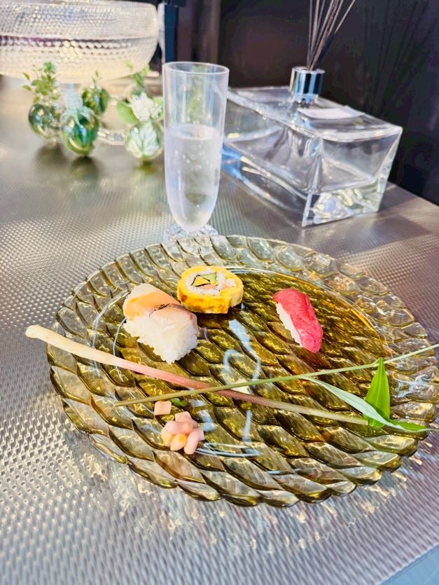 ※口福の一皿、サプライズの一皿、その場で書かれる書きおろしのミニ作品、シャンパーニュ付き